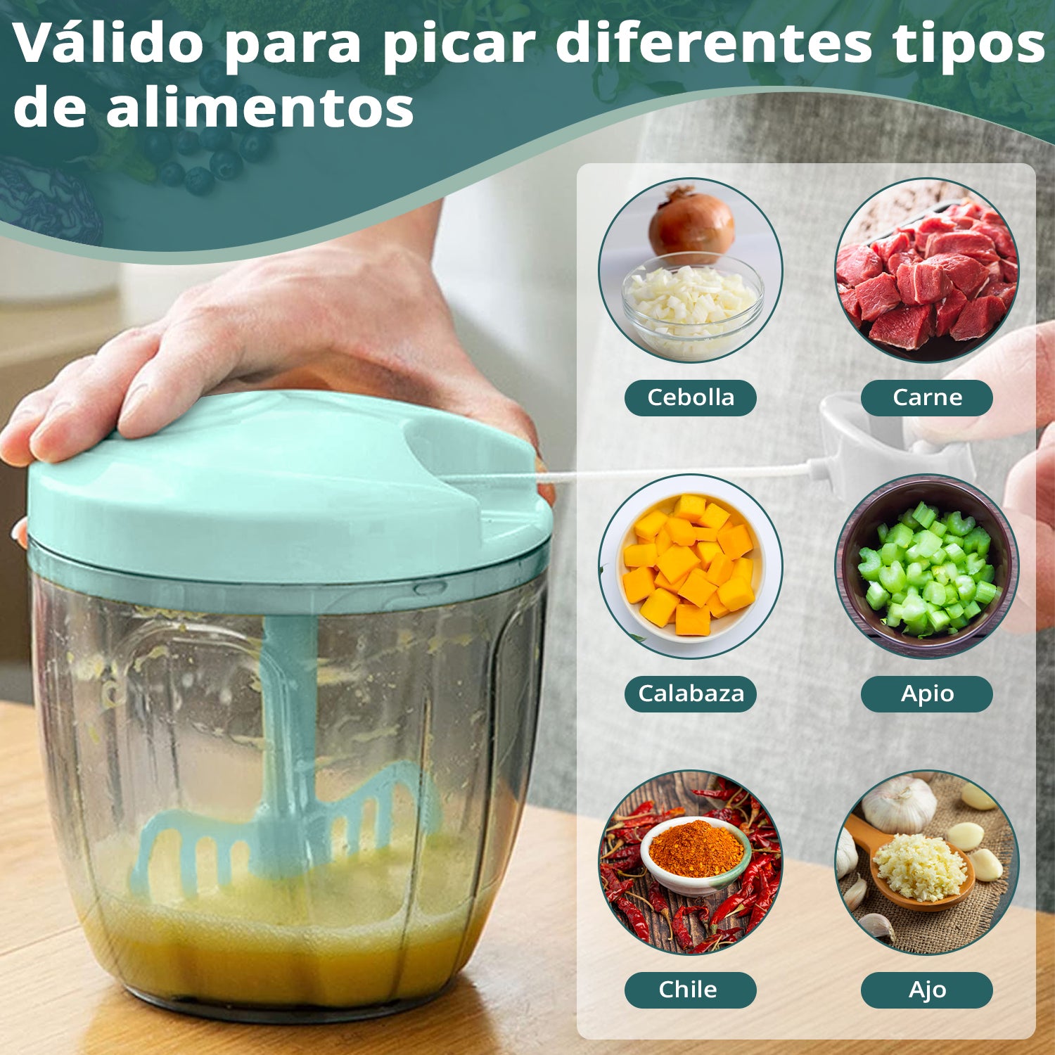 🍅 VERSÁTIL PARA TODO TIPO DE ALIMENTOS - Esta picadora manual es ideal para una amplia variedad de alimentos. Pica fácilmente verduras, frutas, nueces, hierbas con solo unos tirones de cuerda, haciéndola un accesorio esencial en cualquier cocina.