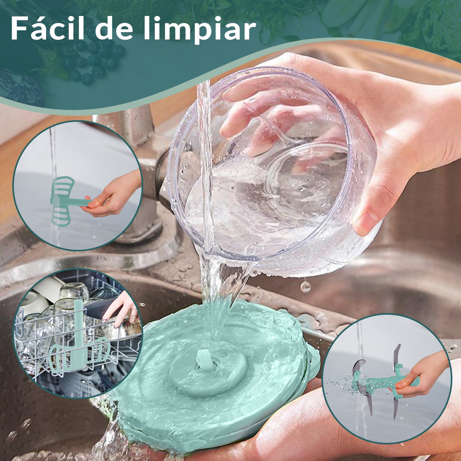 🧼 FÁCIL DE LIMPIAR - Desmontar y limpiar la picadora es muy sencillo. Todas sus partes se separan fácilmente, lo que facilita su mantenimiento y limpieza, y garantiza una higiene óptima después de cada uso. Se recomienda no limpiar la picadora en el lavavajillas, lo ideal es bajo el grifo.